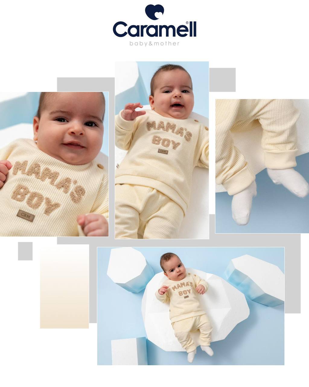 أجواء الخريف صارت أحلى مع أطقم كراميل, دفء + أناقة + راحة 👶✨ خامة عالية الجودة… ناعمة على بشرة صغيرك وحاضرة بكل مشوار 💙