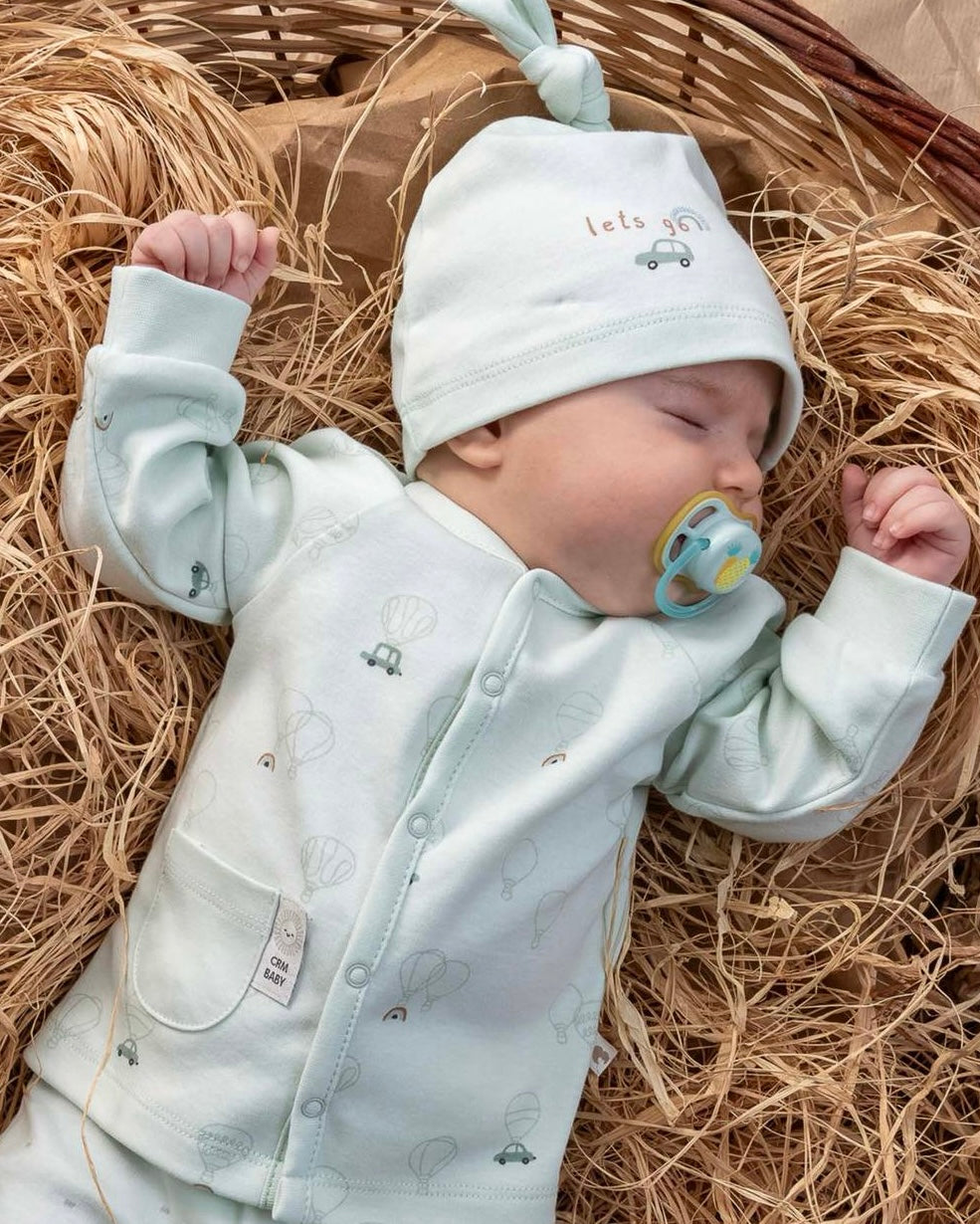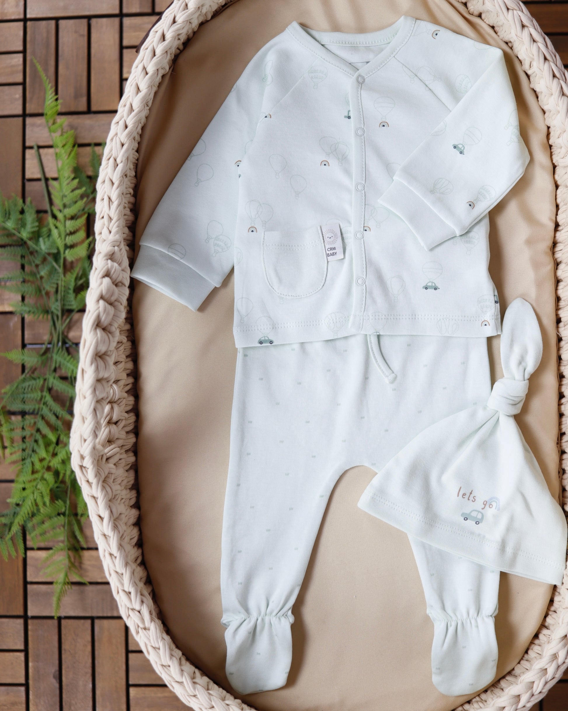 بجامة ٣ قطع قطن ١٠٠٪ أخضر ١-١٢ شهر