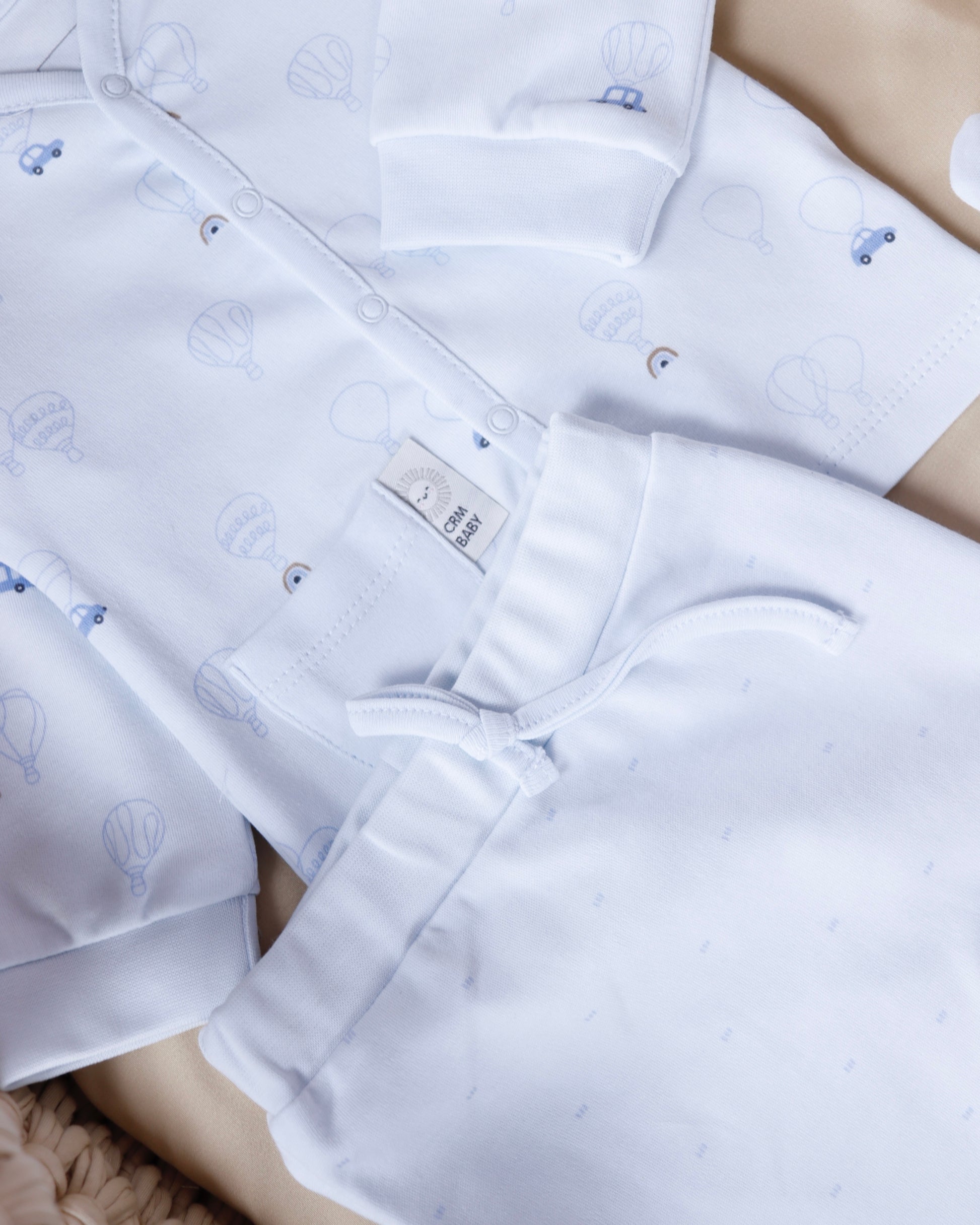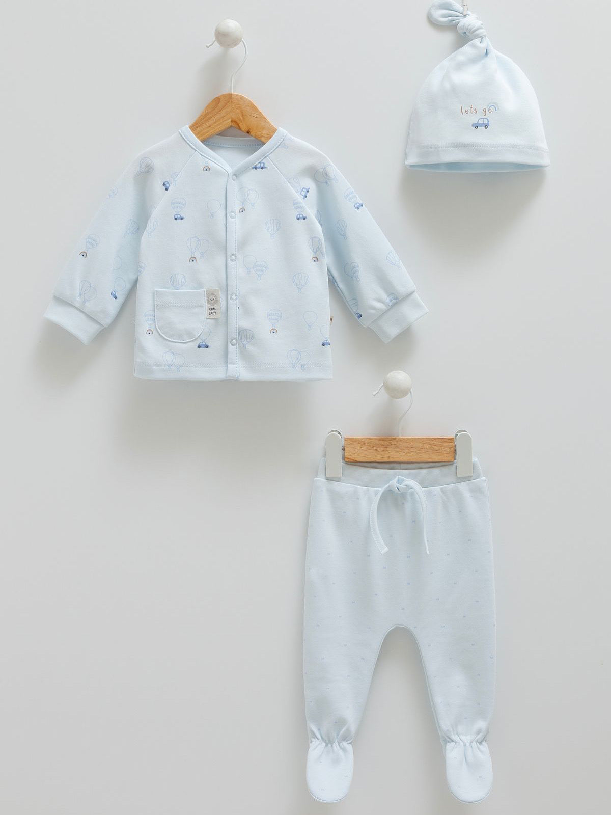 بجامة ٣ قطع قطن ١٠٠٪ أزرق ١-١٢ شهر