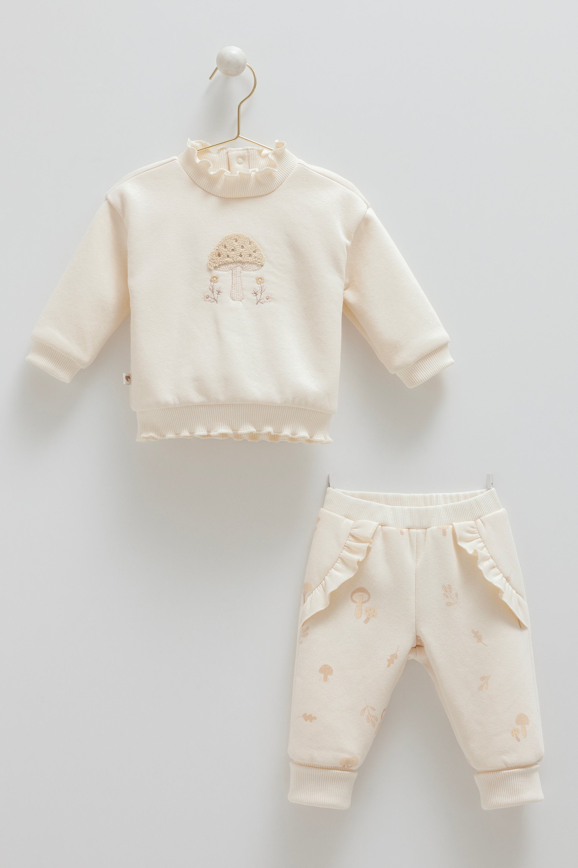 طقم قطن مبطن ١-١٢ شهر🍄ايفوري