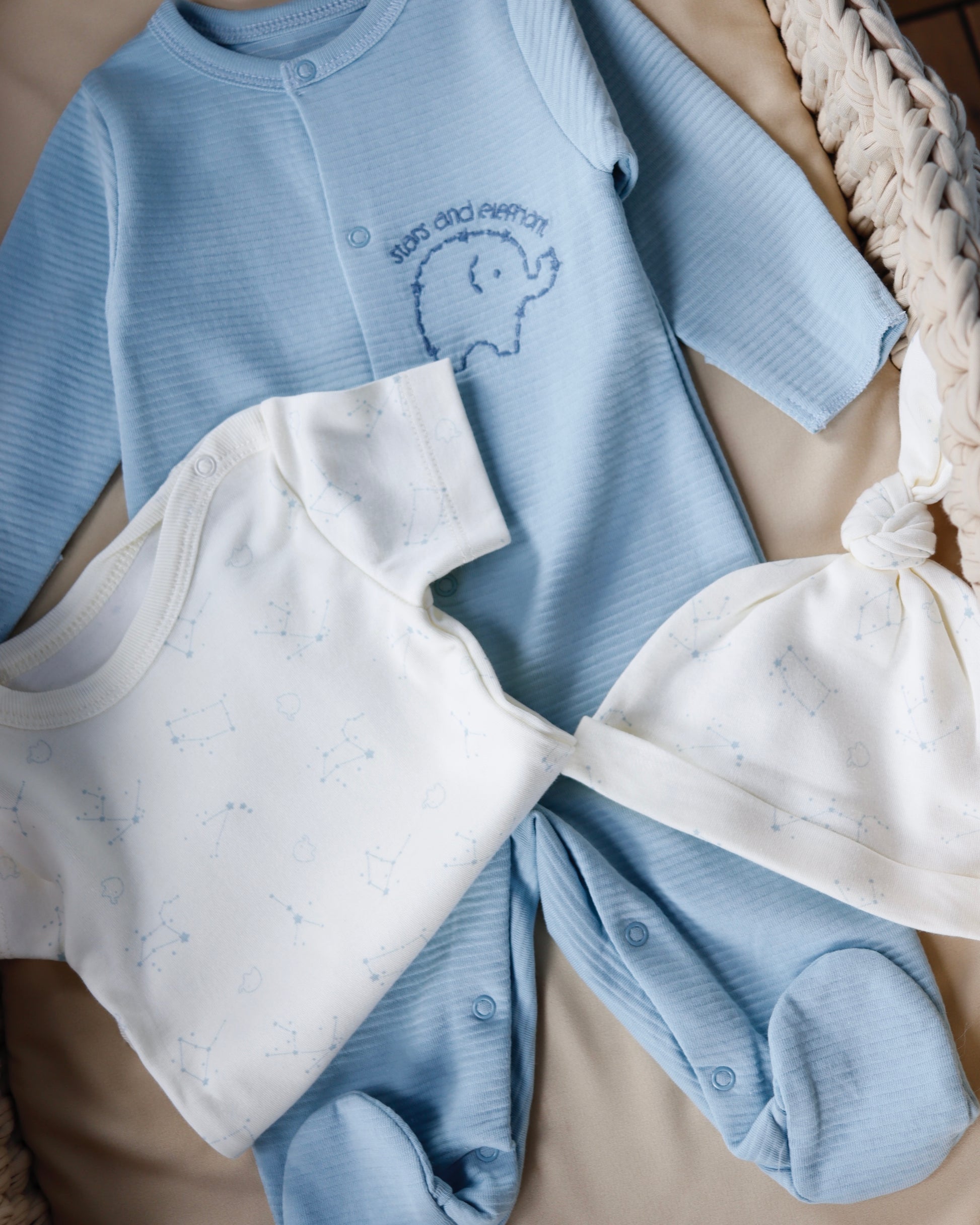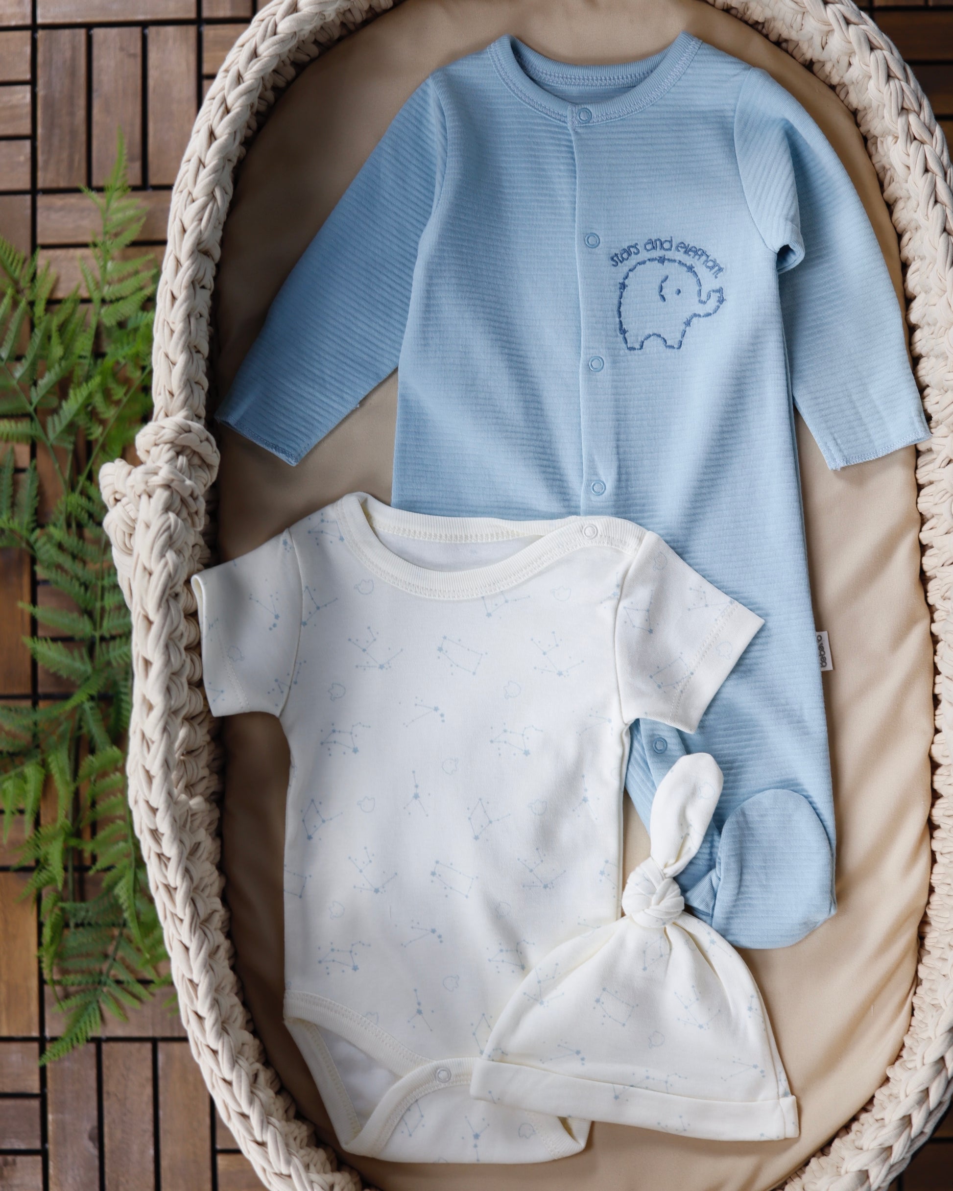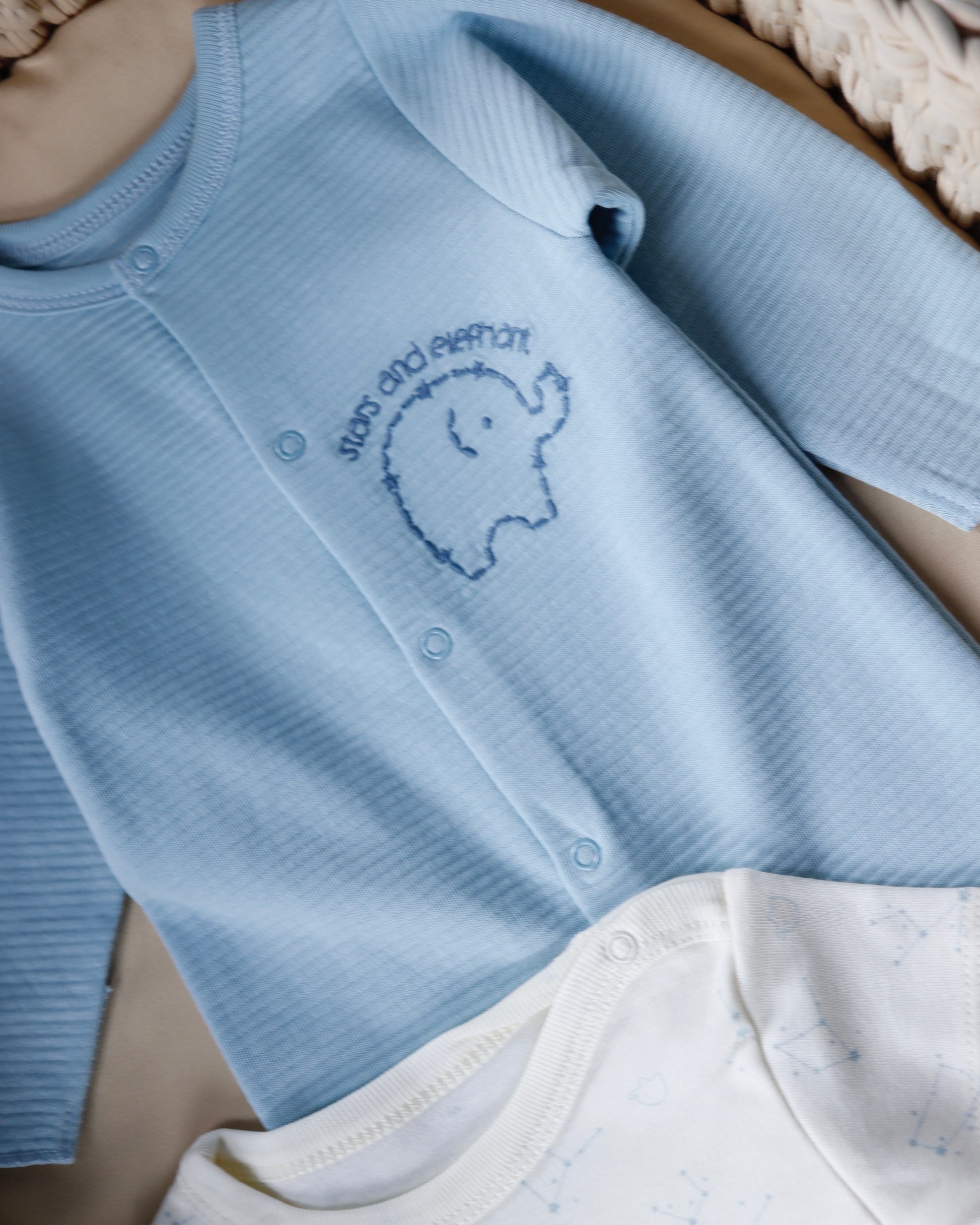 طقم أفرهول بيبي قطن ٣ قطع🐘 🩵