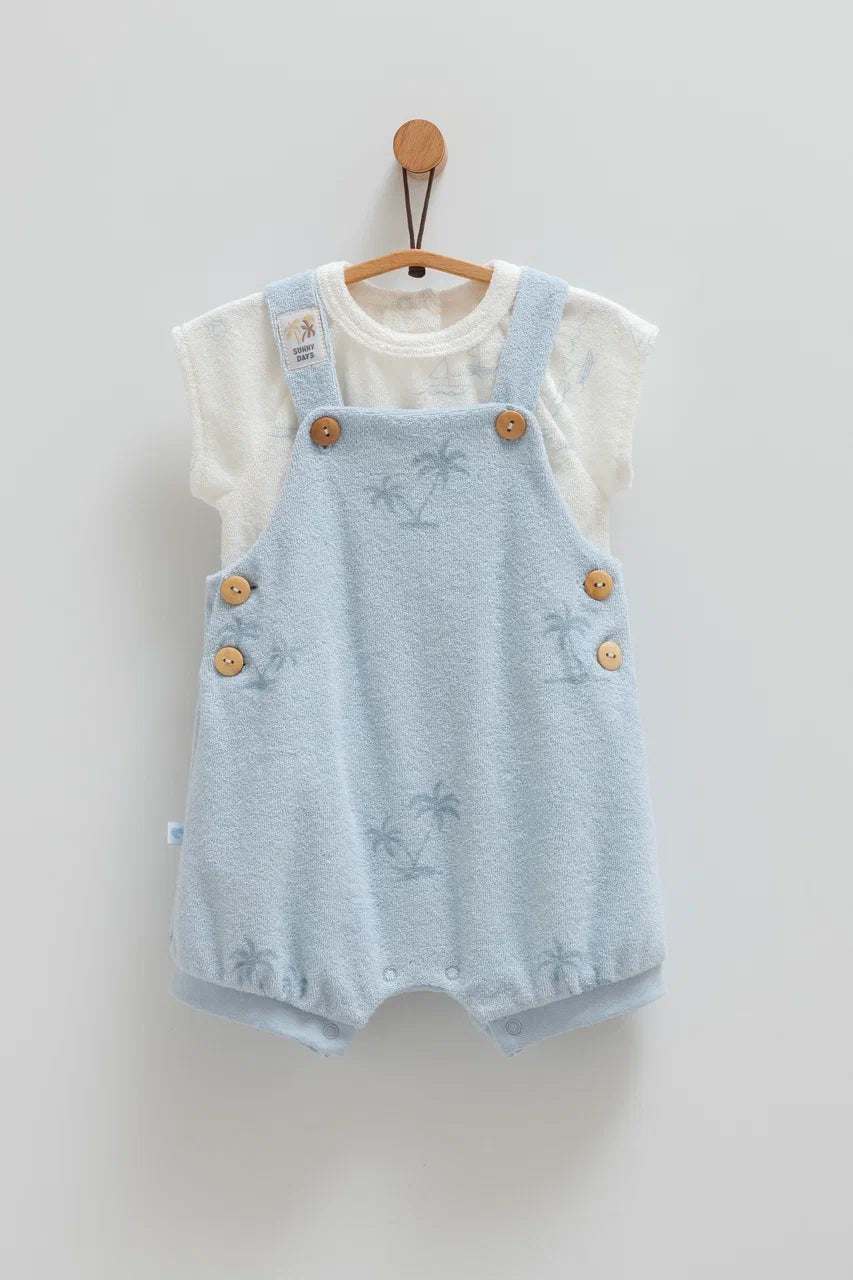 طقم أفرهول صيفي برسمة النخيل باللون الازرق🌴