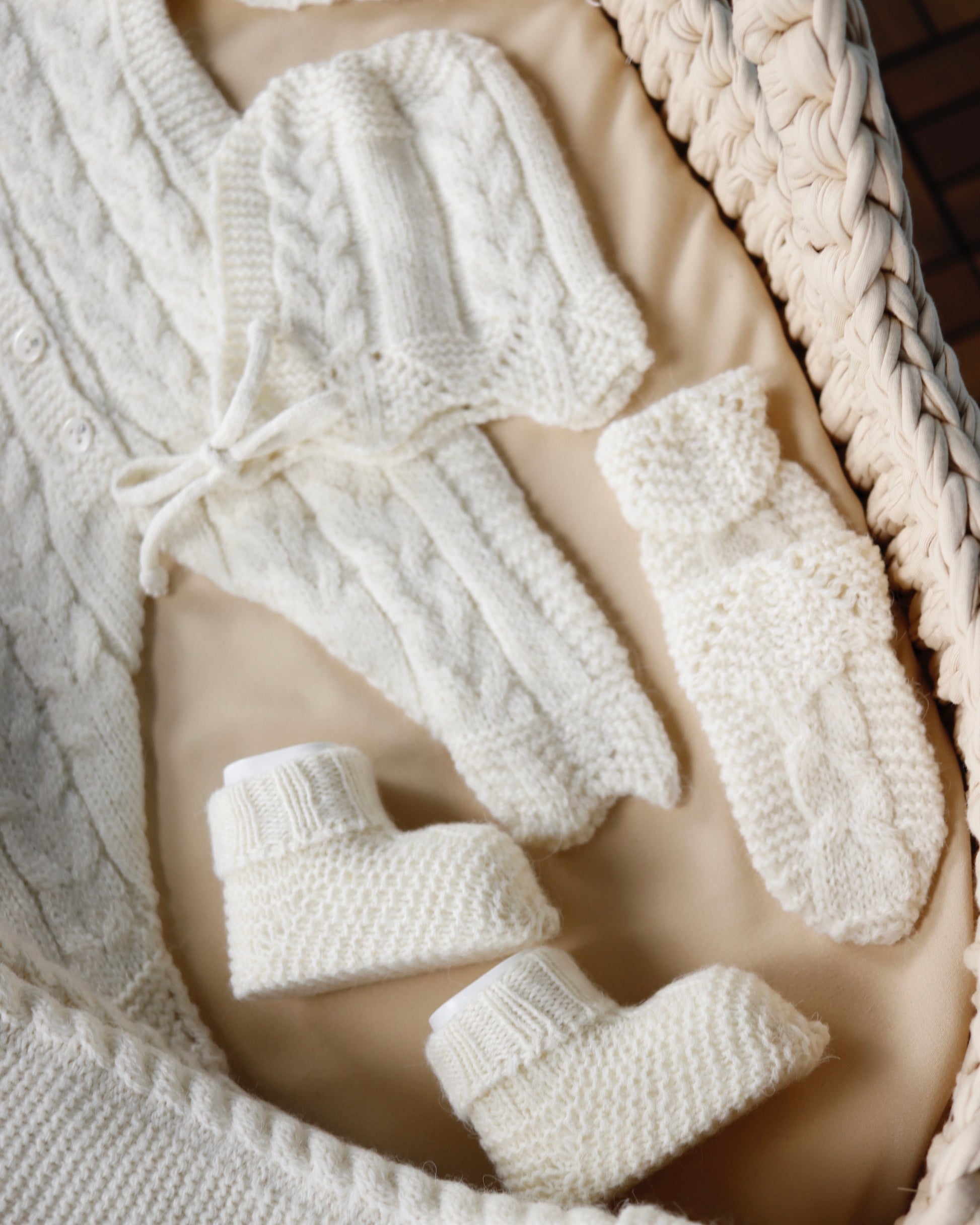 طقم بيبي حديث ولادة شتوي صوف طبيعي🕊️
