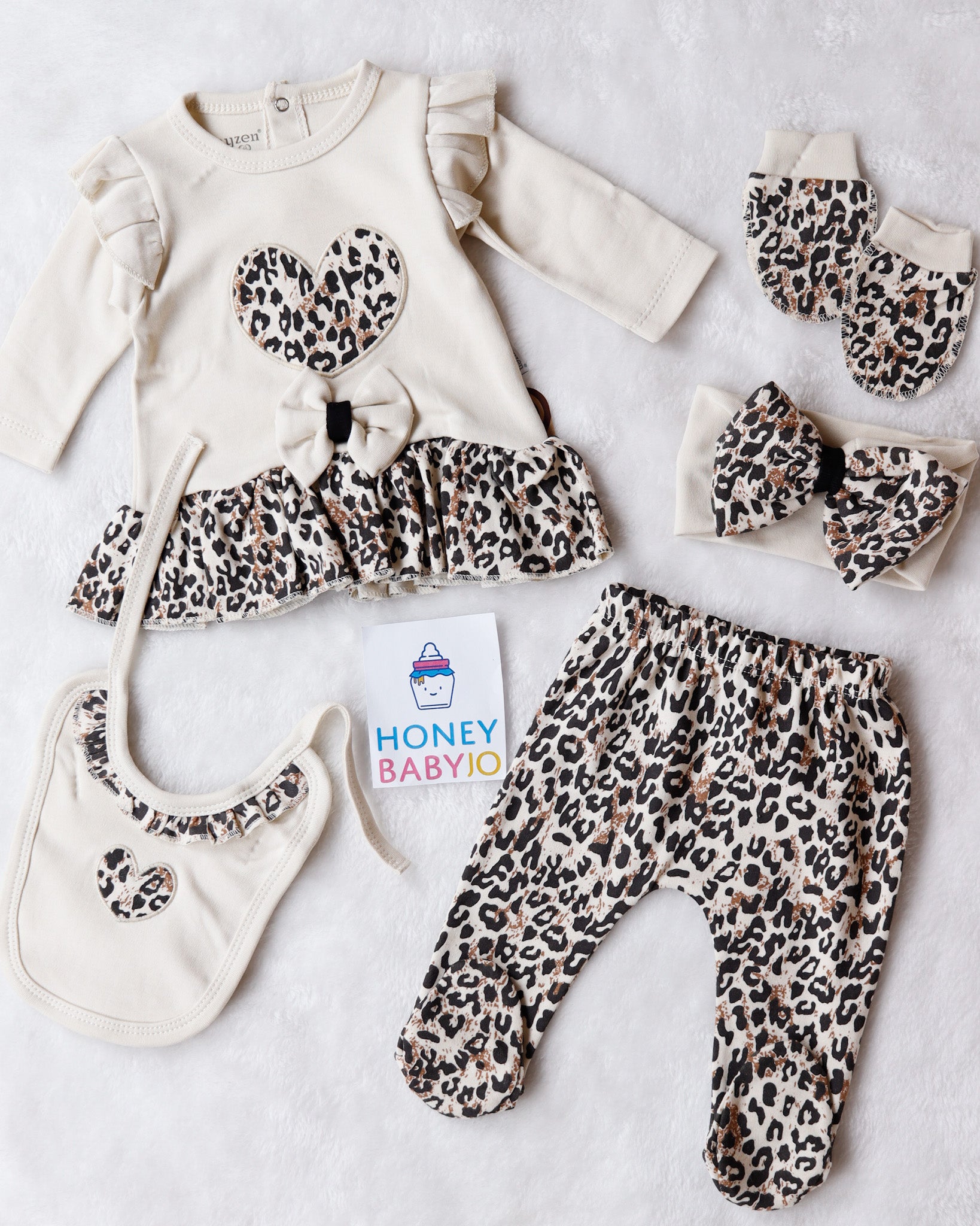 طقم بيبي مكون من : بلوز،بنطال،طاقية،مريله،كفوف*👼