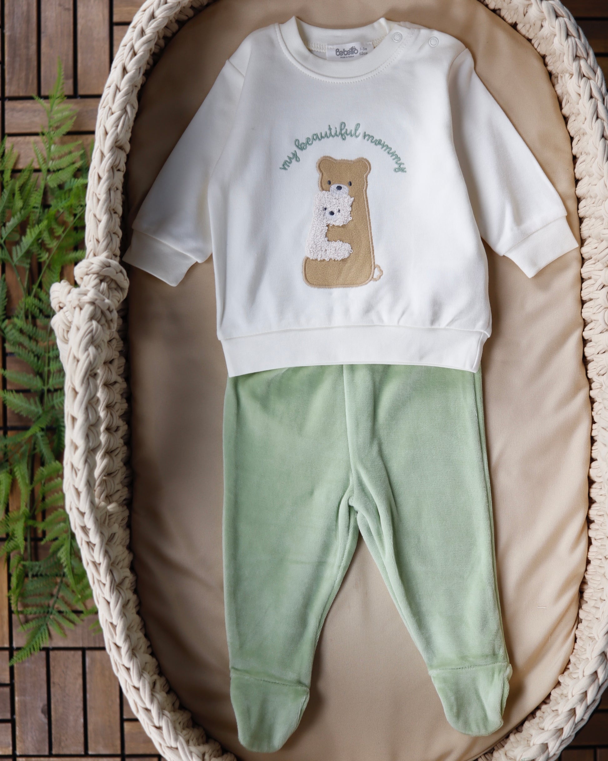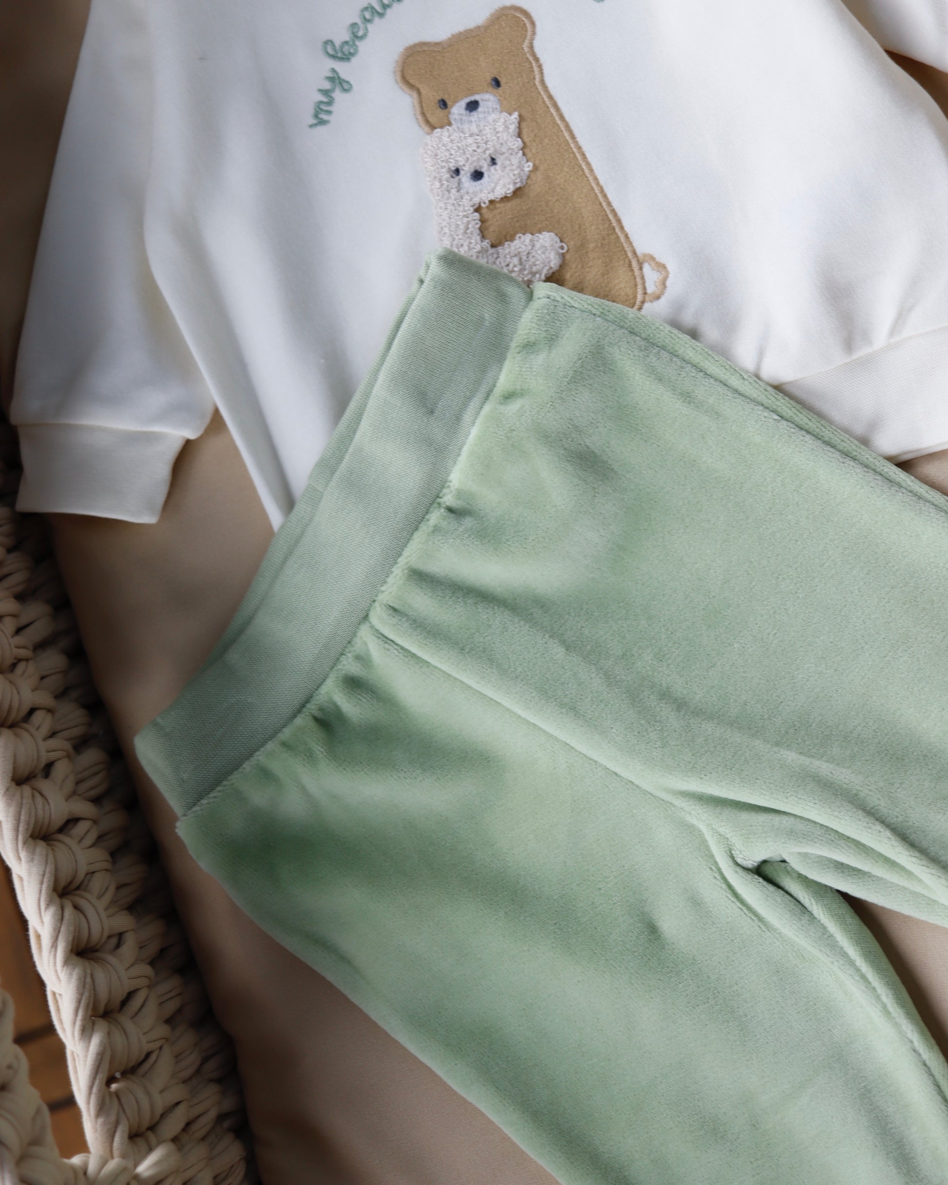 بجامة بيبي قطعتين قطن ومخمل🐻🤎