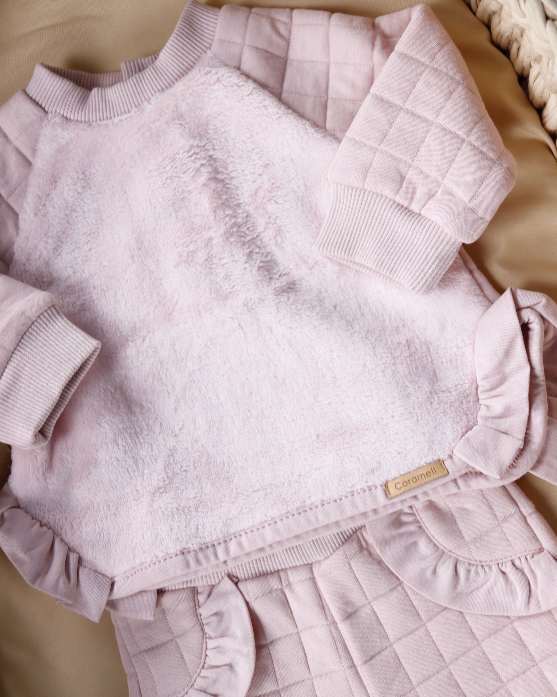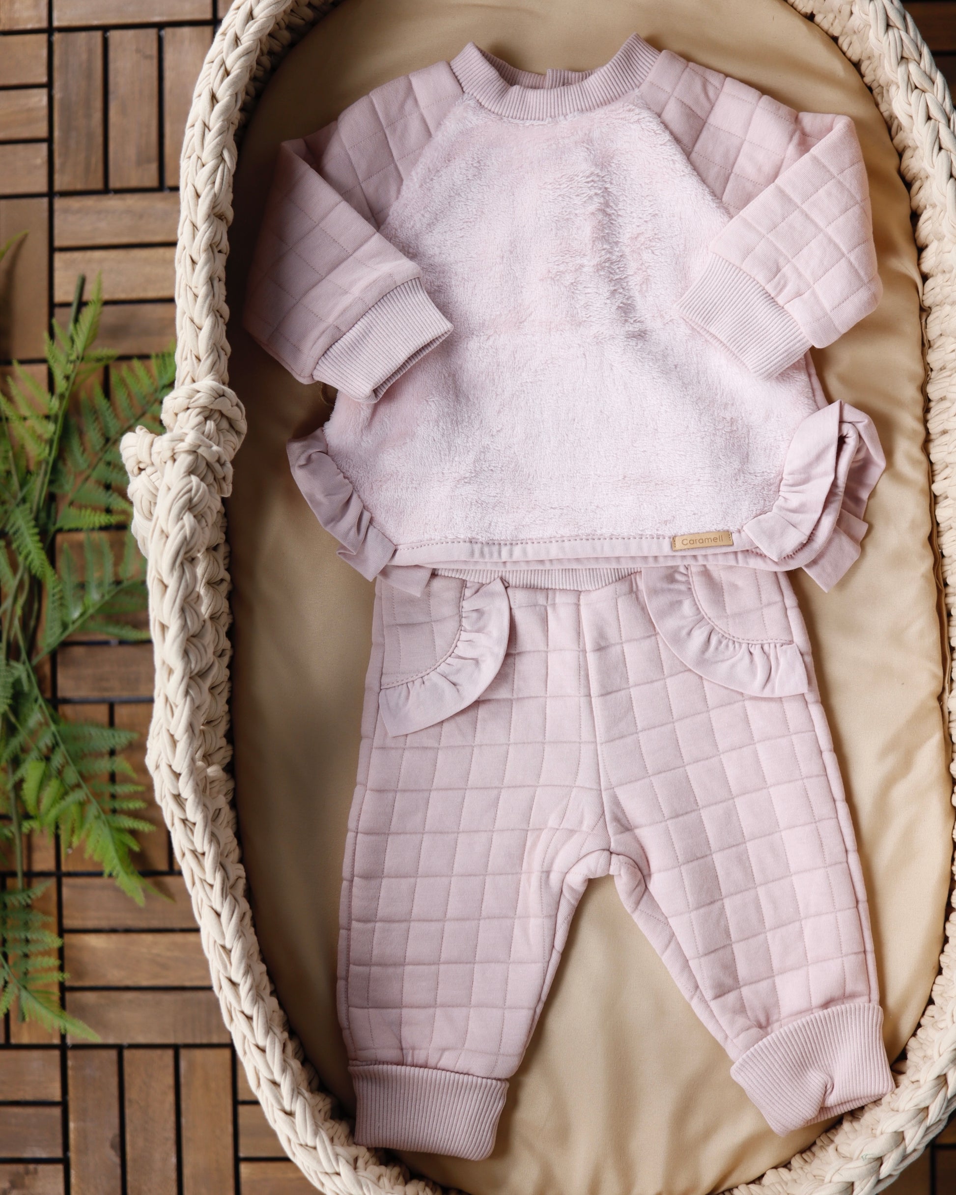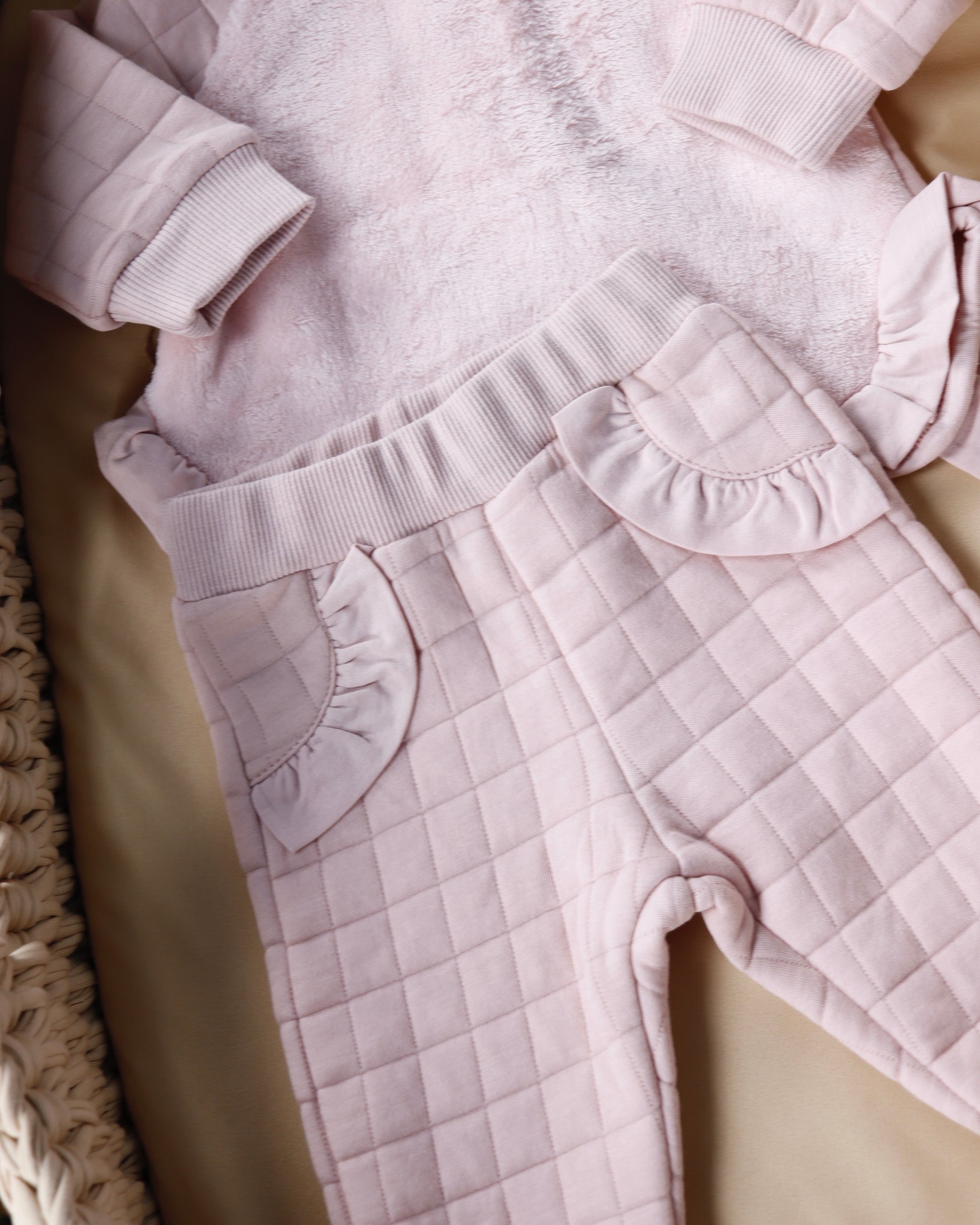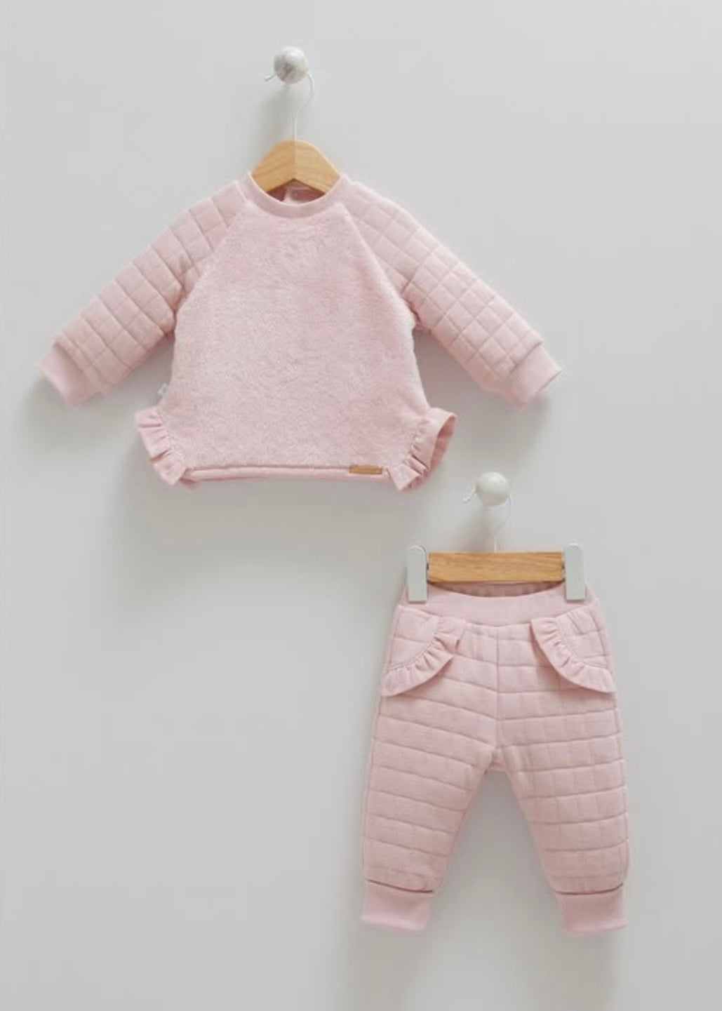 طقم بيبي قطن مبطن - لون زهري