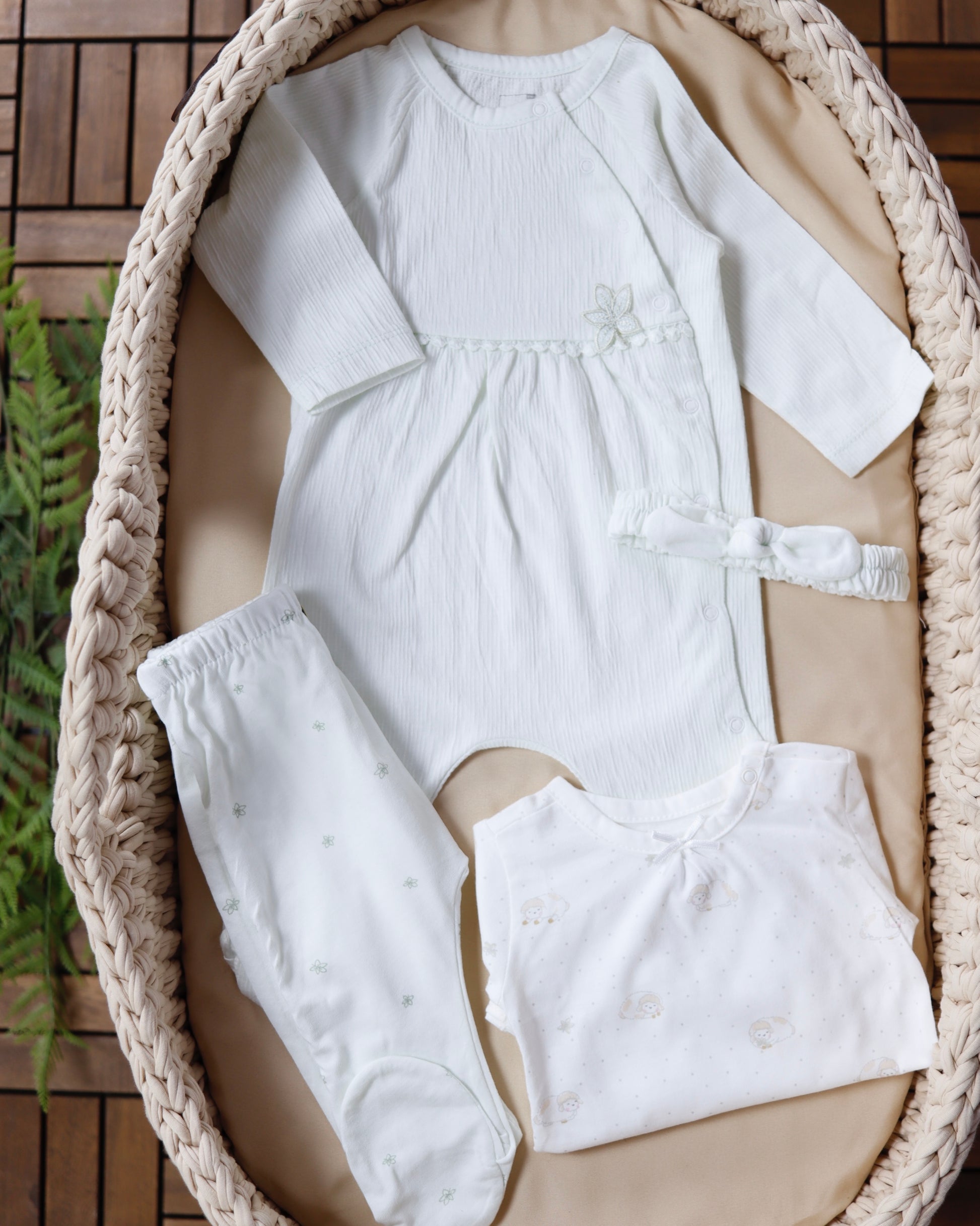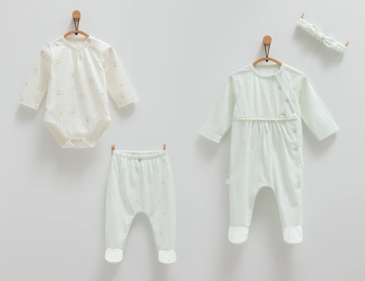 طقم بيبي قطن ١٠٠٪‏ ٤ قطع ١-٣ أشهر أخضر