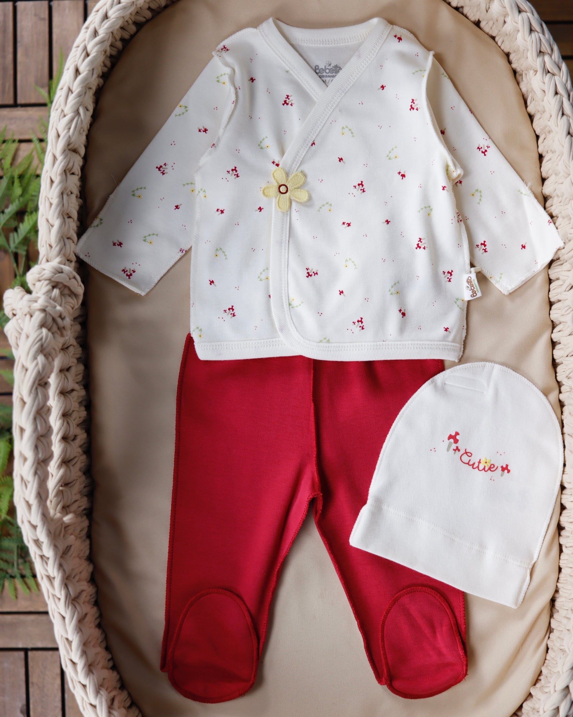 طقم بيبي قطن ٣ قطع خياطة خارجية♥️