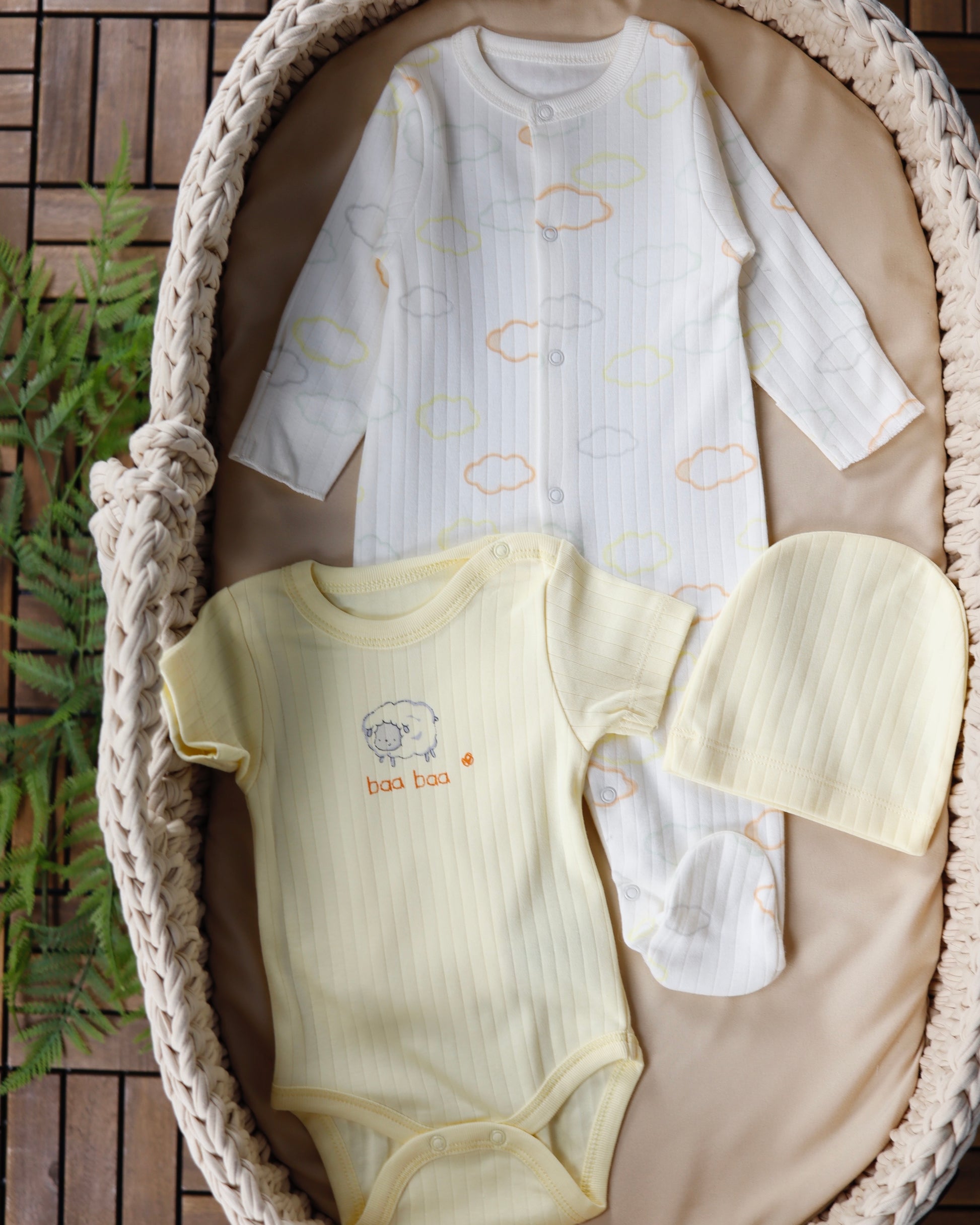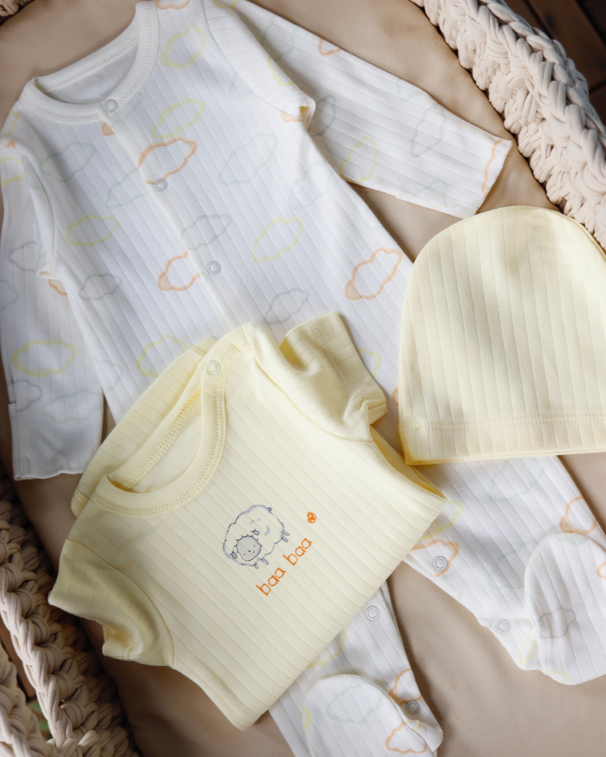 طقم أفرهول بيبي قطن ٣ قطع 💛