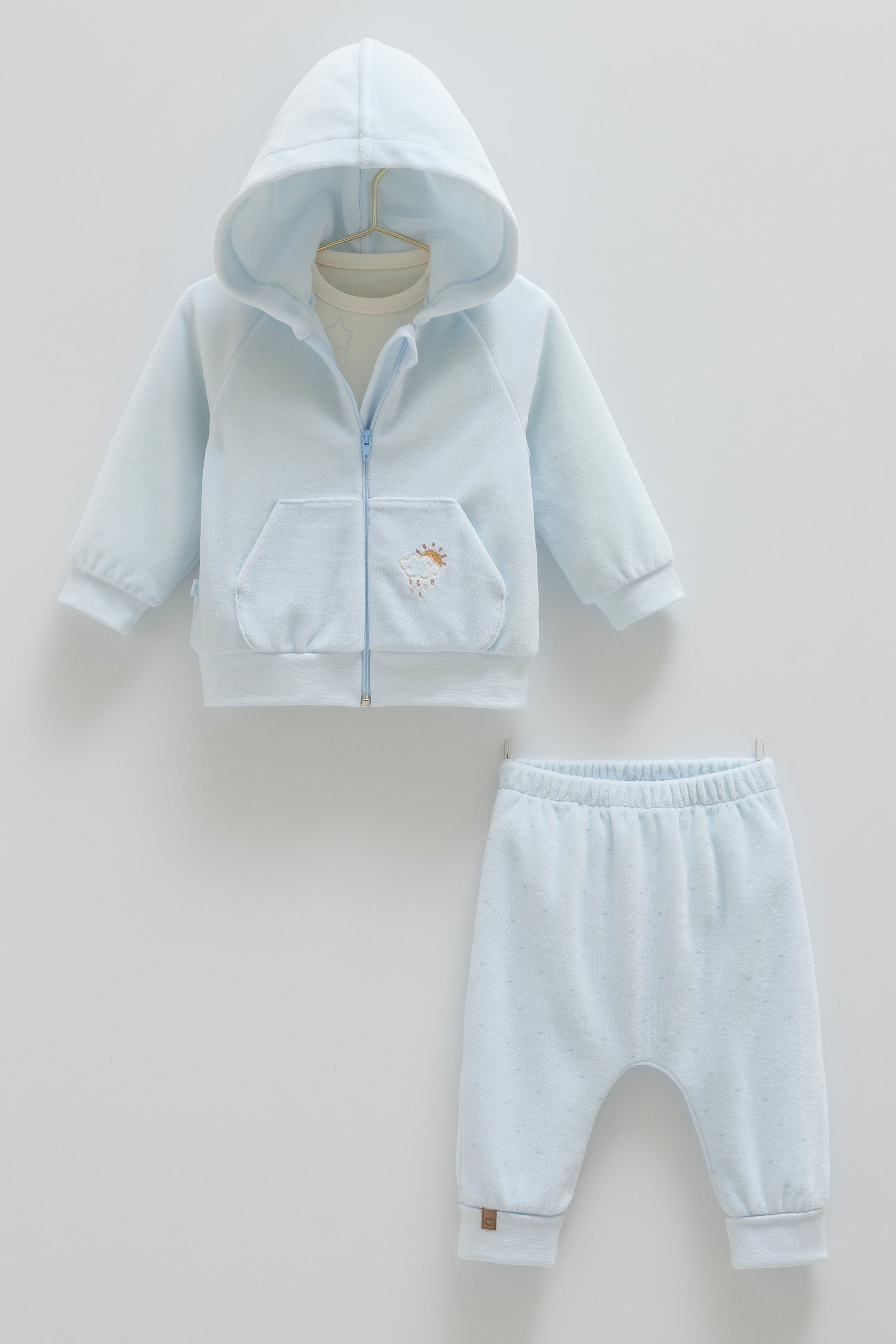 طقم بيبي مخمل ٣ قطع ٣-١٨شهر ازرق