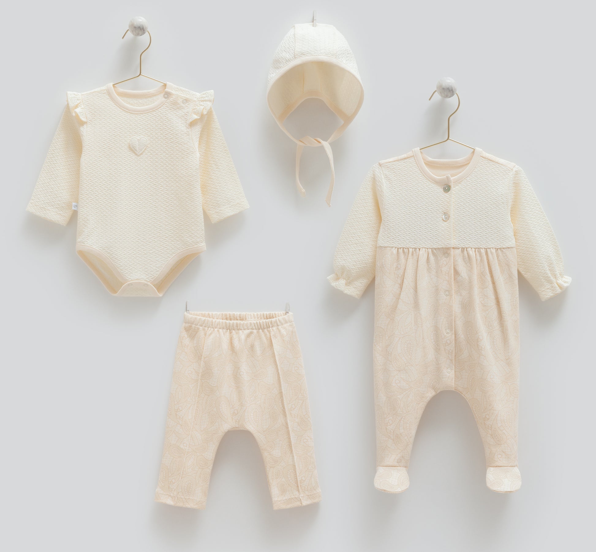 طقم بيبي ٤ قطع🪡قطن طبيعي ١٠٠٪ بيج
