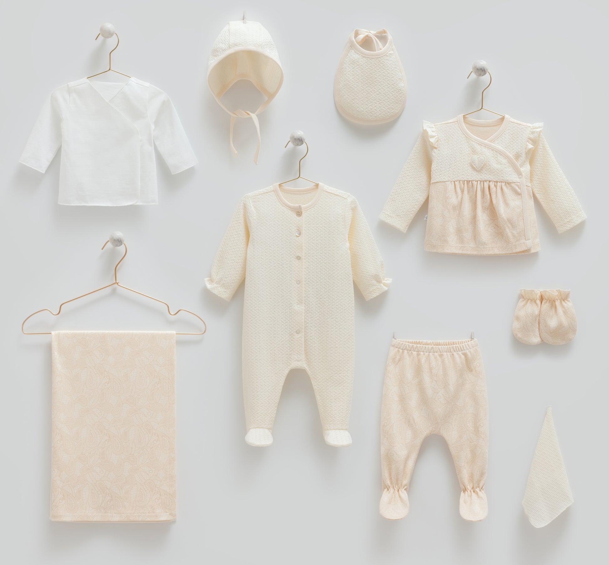 طقم حديث ولادة ١٠ قطع🪡قطن طبيعي ١٠٠٪ ايفوري
