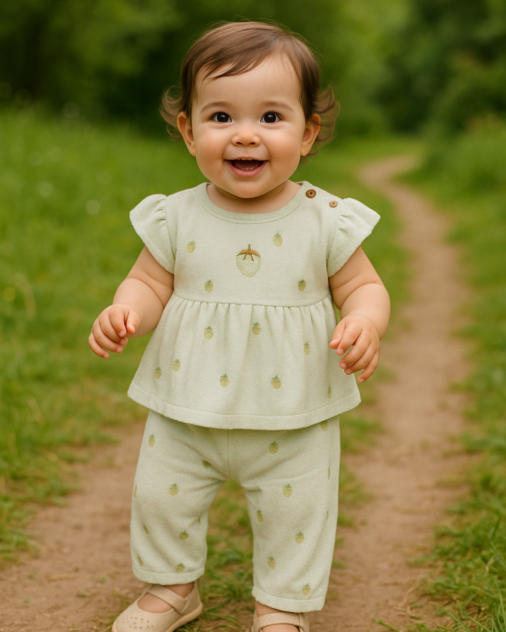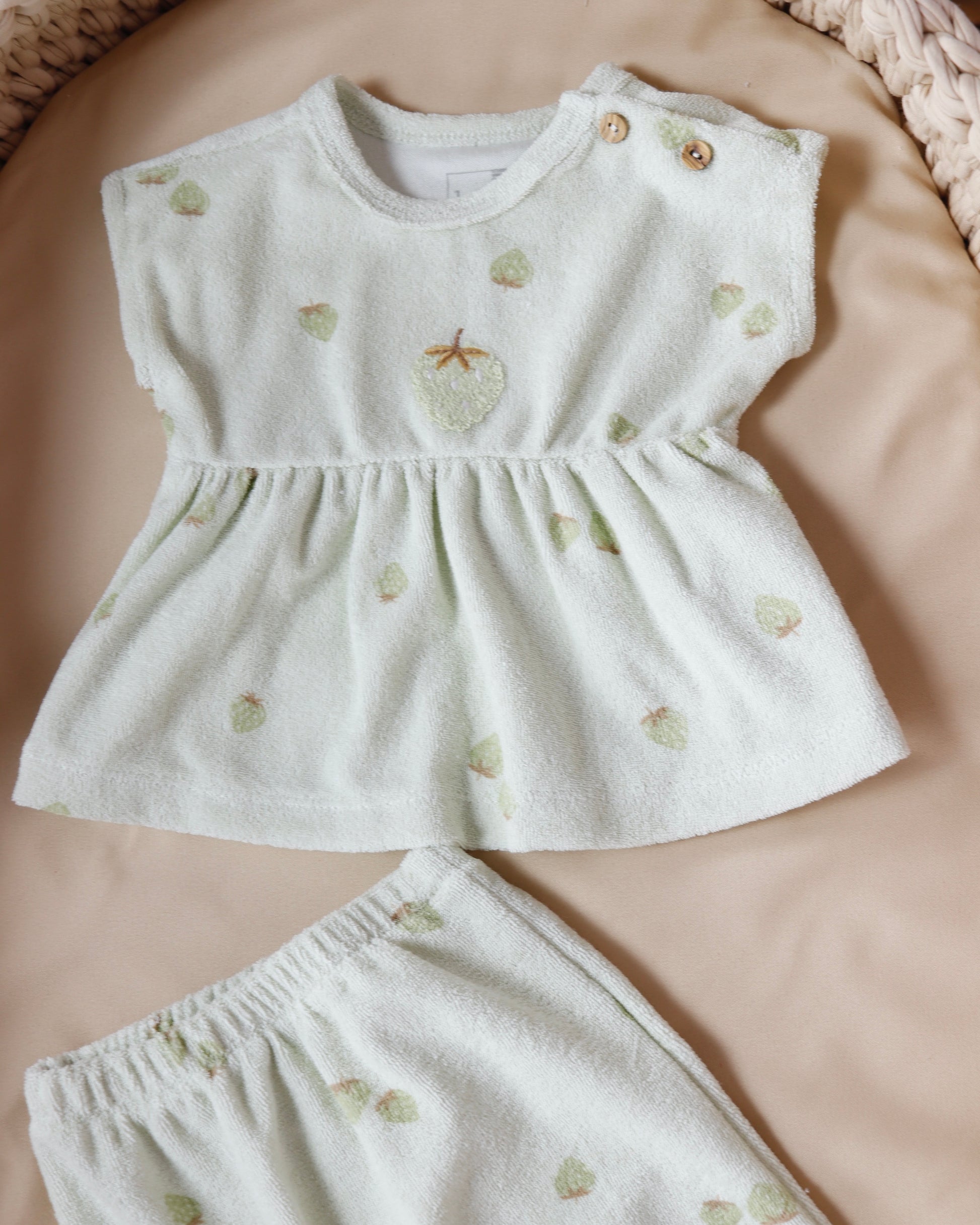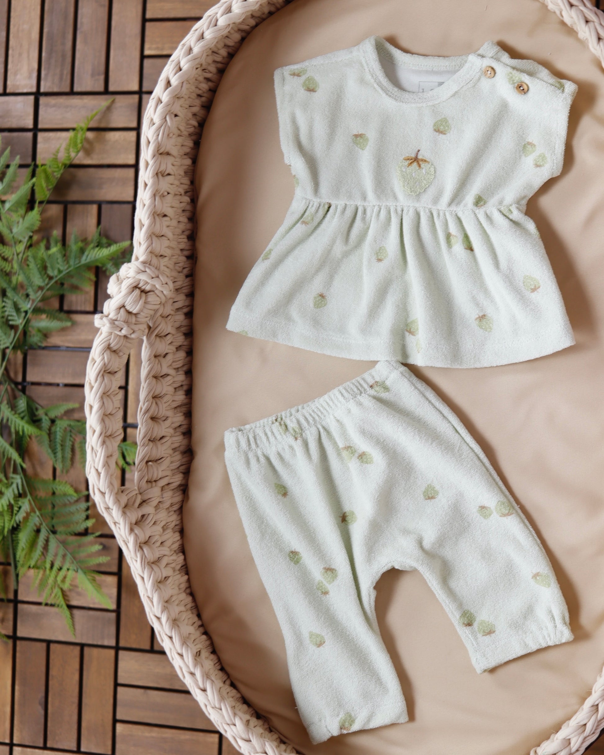 طقم صيفي برسمة الفراولة - الأخضر🍓