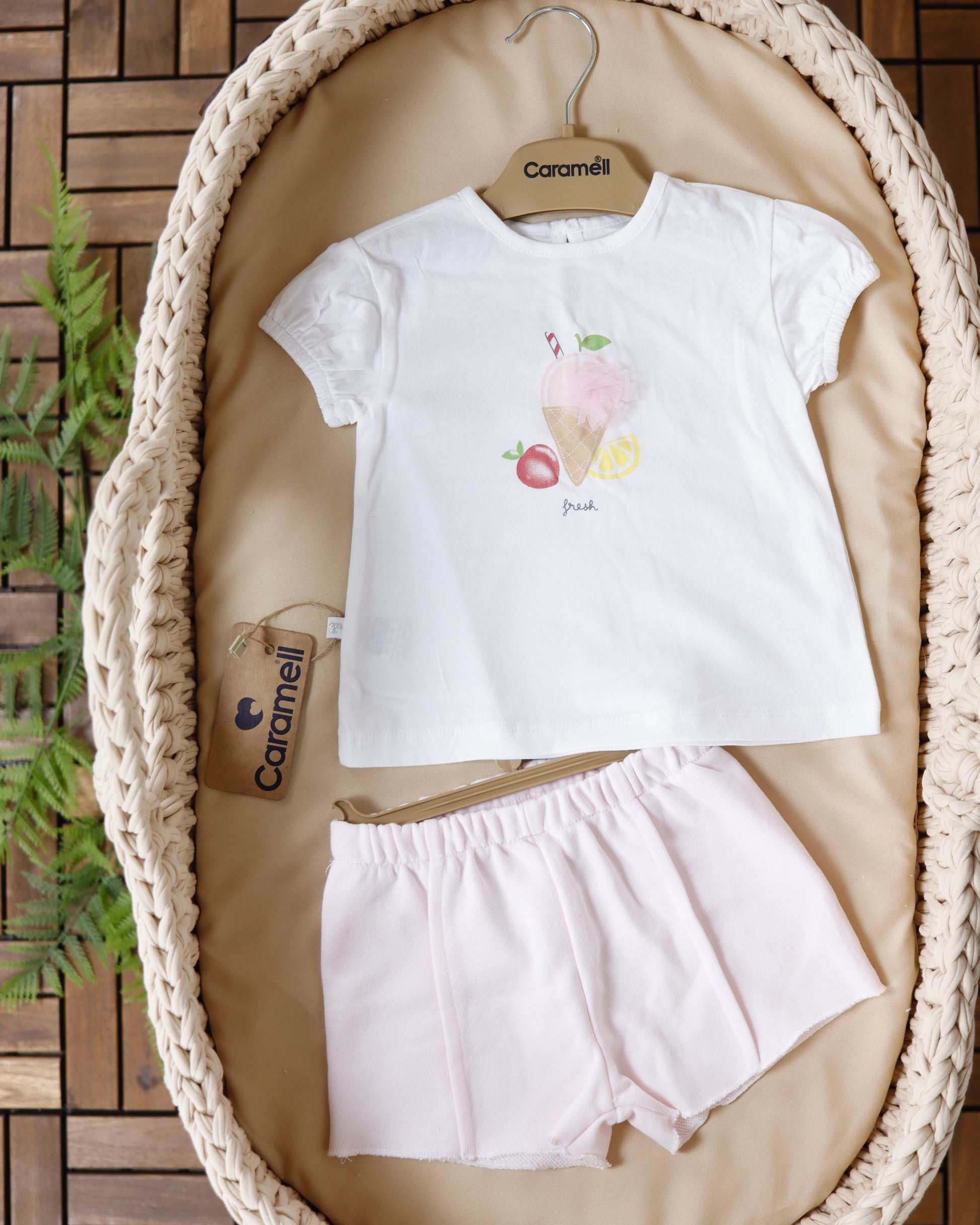 طقم صيفي قطن١٠٠٪ زهري ٣-١٨ شهر