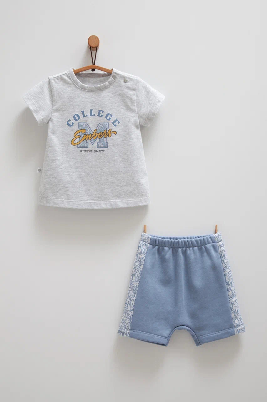 طقم صيفي قطن١٠٠٪ ازرق غامق ٣-١٨ شهر