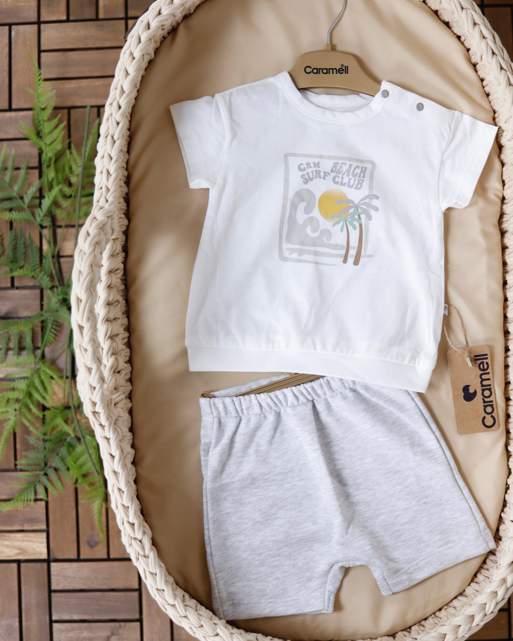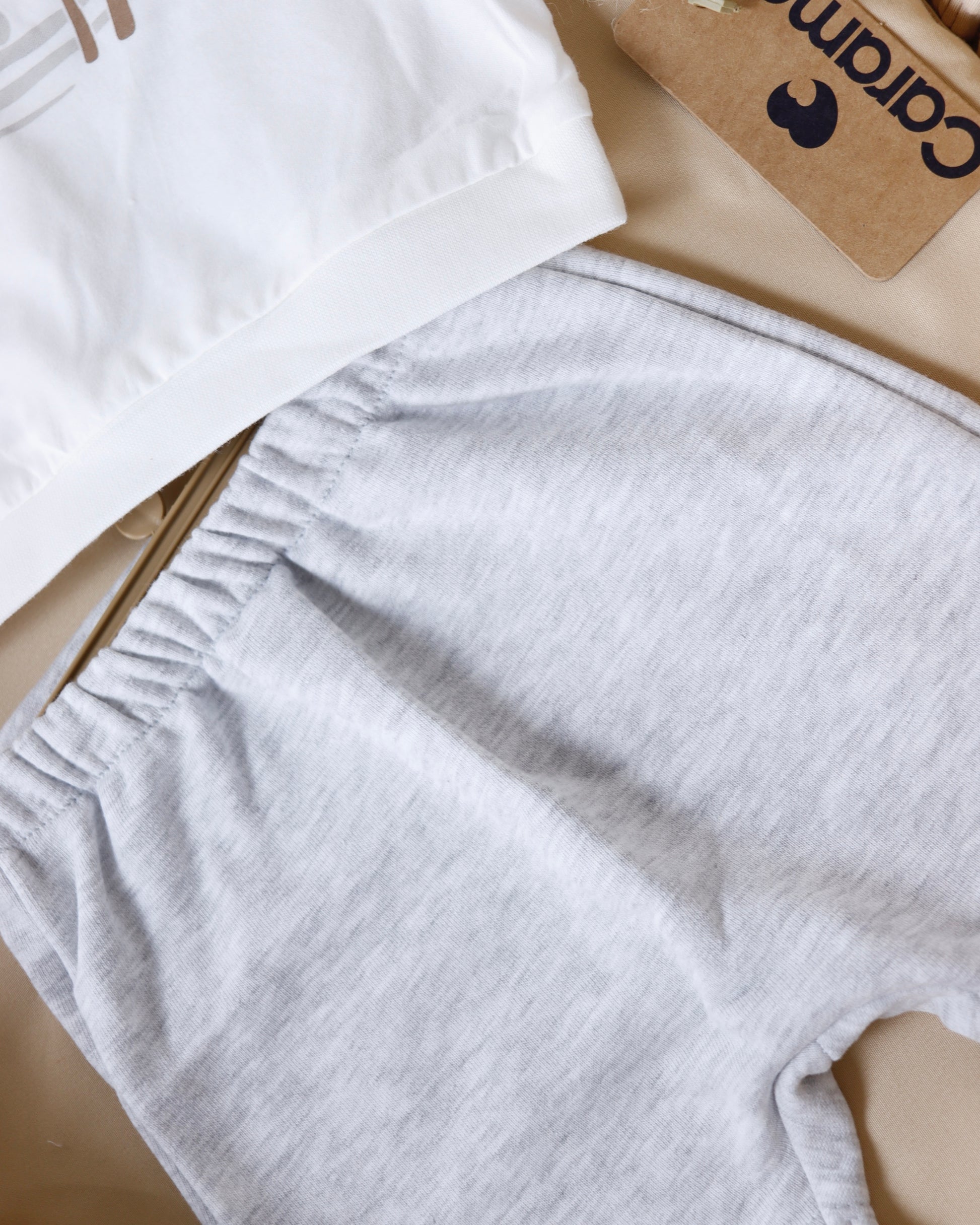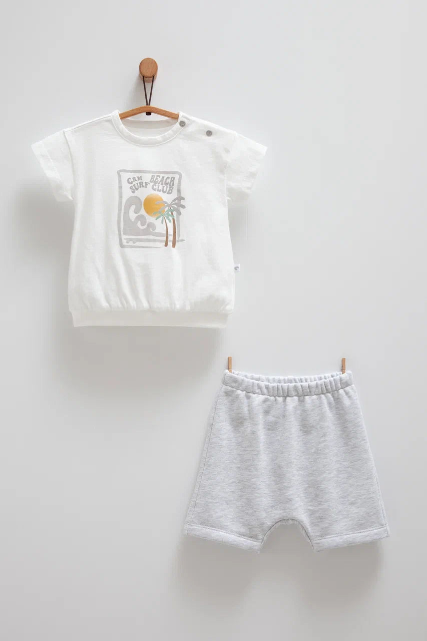 طقم صيفي قطن١٠٠٪‏ رمادي ٣-١٨ شهر