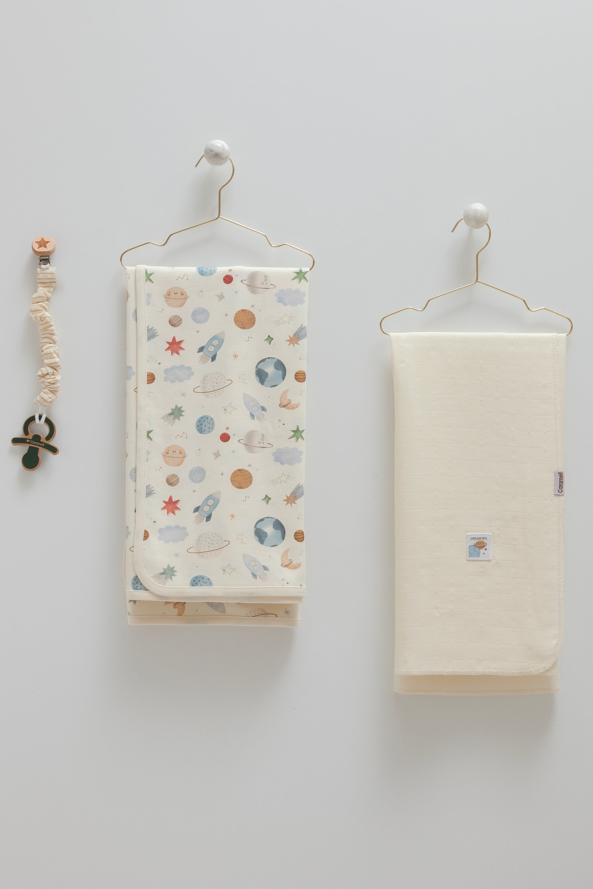 طقم كوفليتين قطن و موسيلين مع تعليقة لهاية🪐