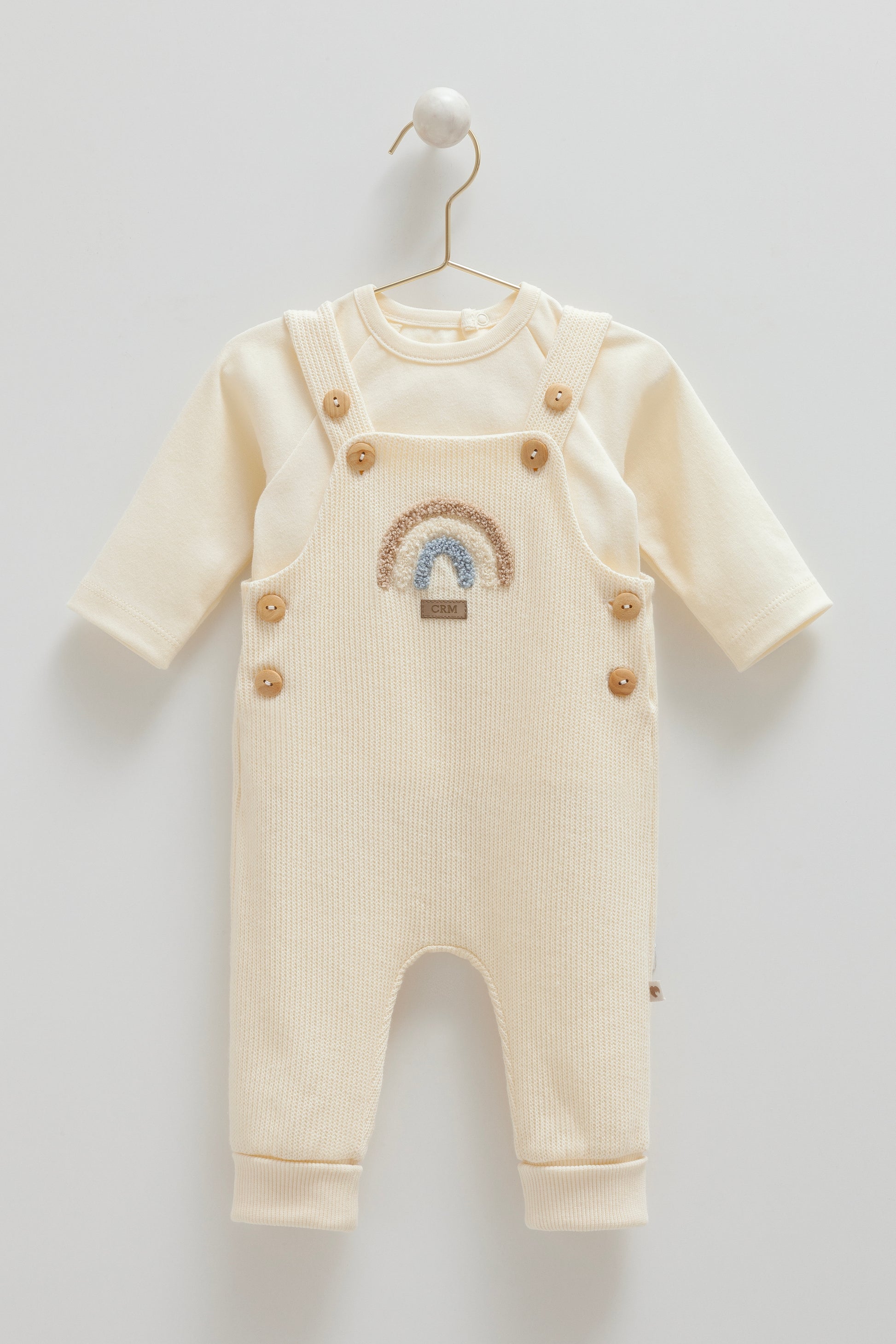طقم أفرهول قطن شتوي ١-١٢ شهر🌨️ايفوري