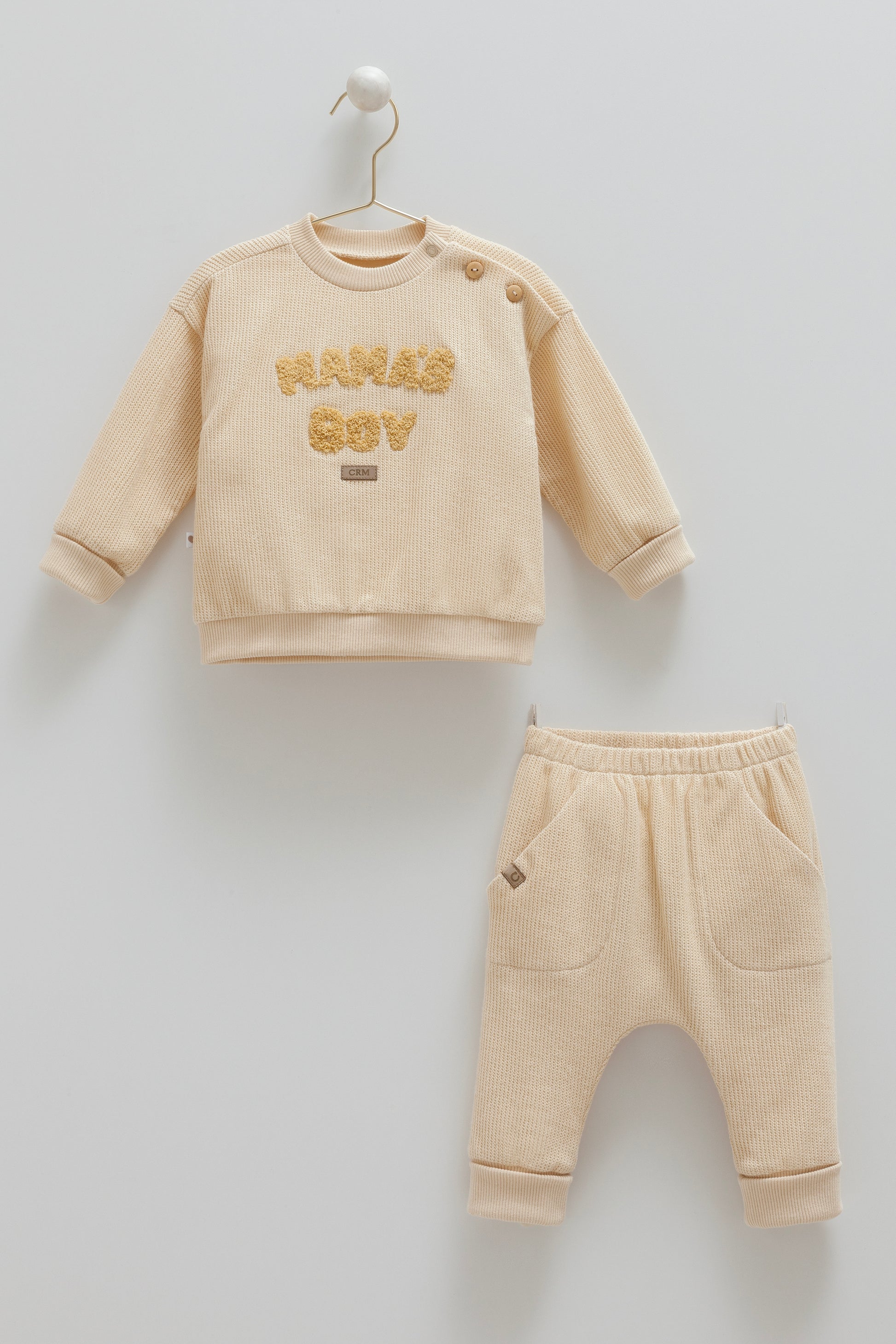 طقم قطعتن قطن ثقيل١٠٠٪ بيج✨٣-١٨ شهر