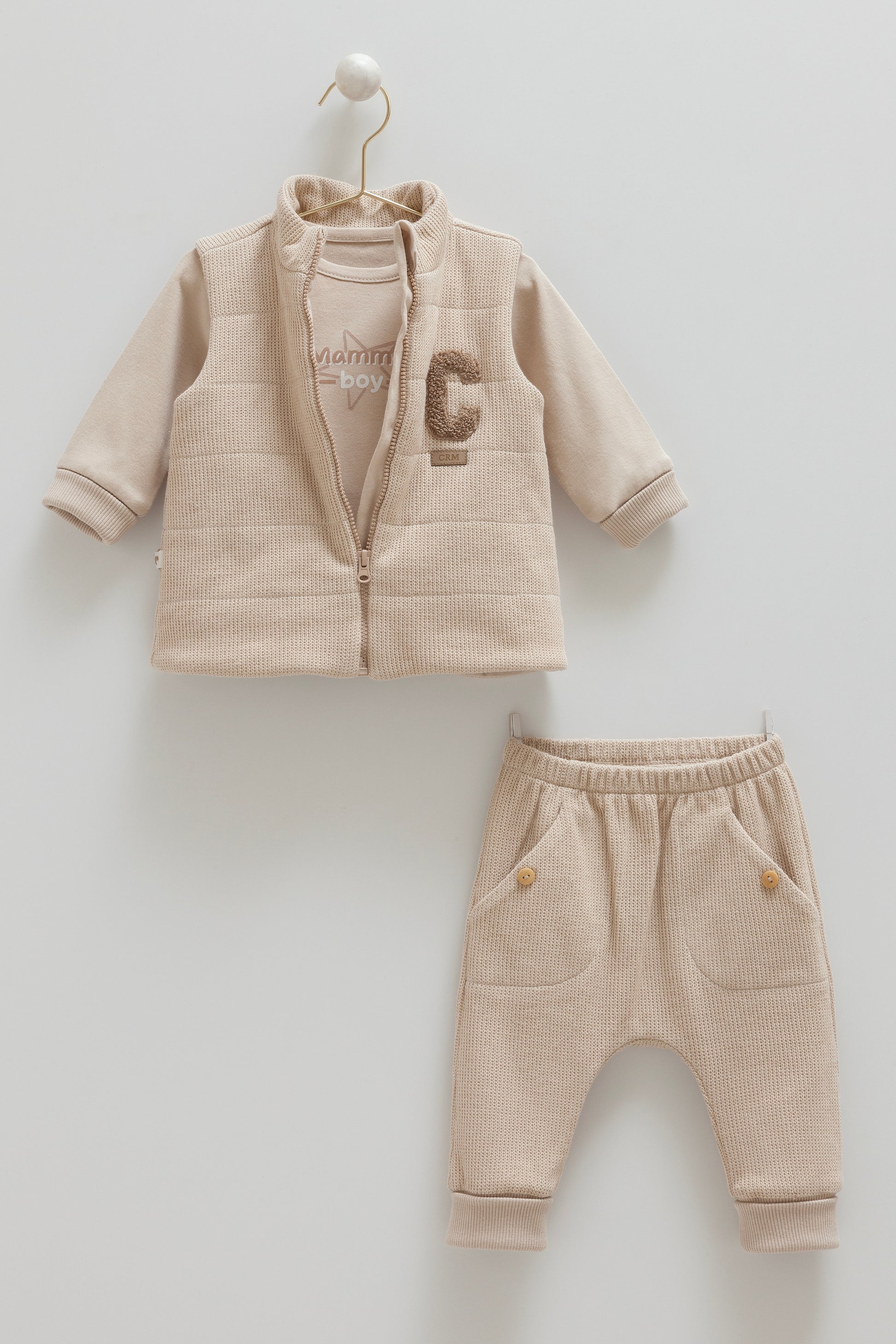 طقم ٣ قطع قطن شتوي ١٠٠٪ بني✨٣-١٨ شهر